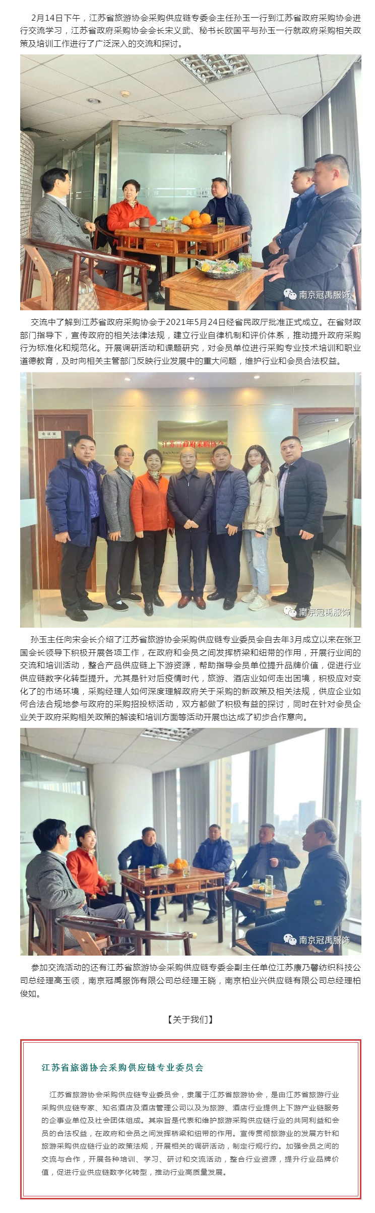 【交流•專訪】新春第一(yī)訪——江蘇省旅遊協會λφ(huì)采購(gòu)供應鏈專委會(huì)主任孫玉一(y₽€ī)行(xíng)到(dào)江蘇省政府采購(gòu)協會(hu'₽ì)進行(xíng)交流學習(xí)