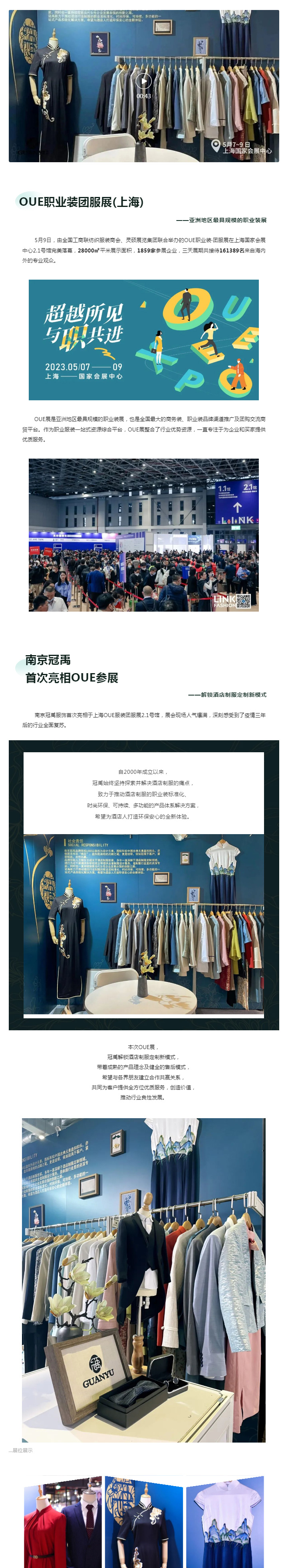 5月(yuè)9日(rì)完美(měi)落幕--- 南(nán)京冠禹服飾♦γ首次亮(liàng)相(xiàng)上(shàng©✔)海(hǎi)OUE職業(yè)裝團服展